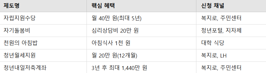 요즘 청년들의 큰 관심을 받고 있는 정책이 바로 자립지원수당, 자기돌봄비, 천원의 아침밥 같은 생활 밀착형 복지입니다.